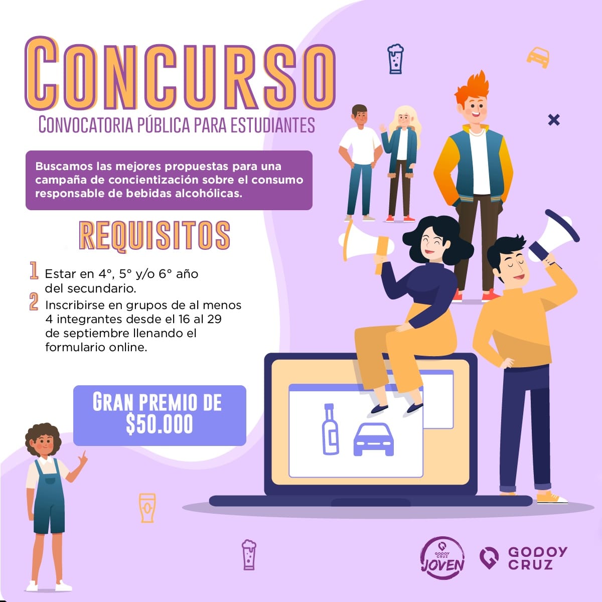 Hasta el 29 de septiembre los estudiantes de los últimos años de escuelas secundarias de Godoy Cruz podrán inscribirse para participar del concurso que entregará 50 mil pesos en premios. Inscripciones aquí 👇🏻