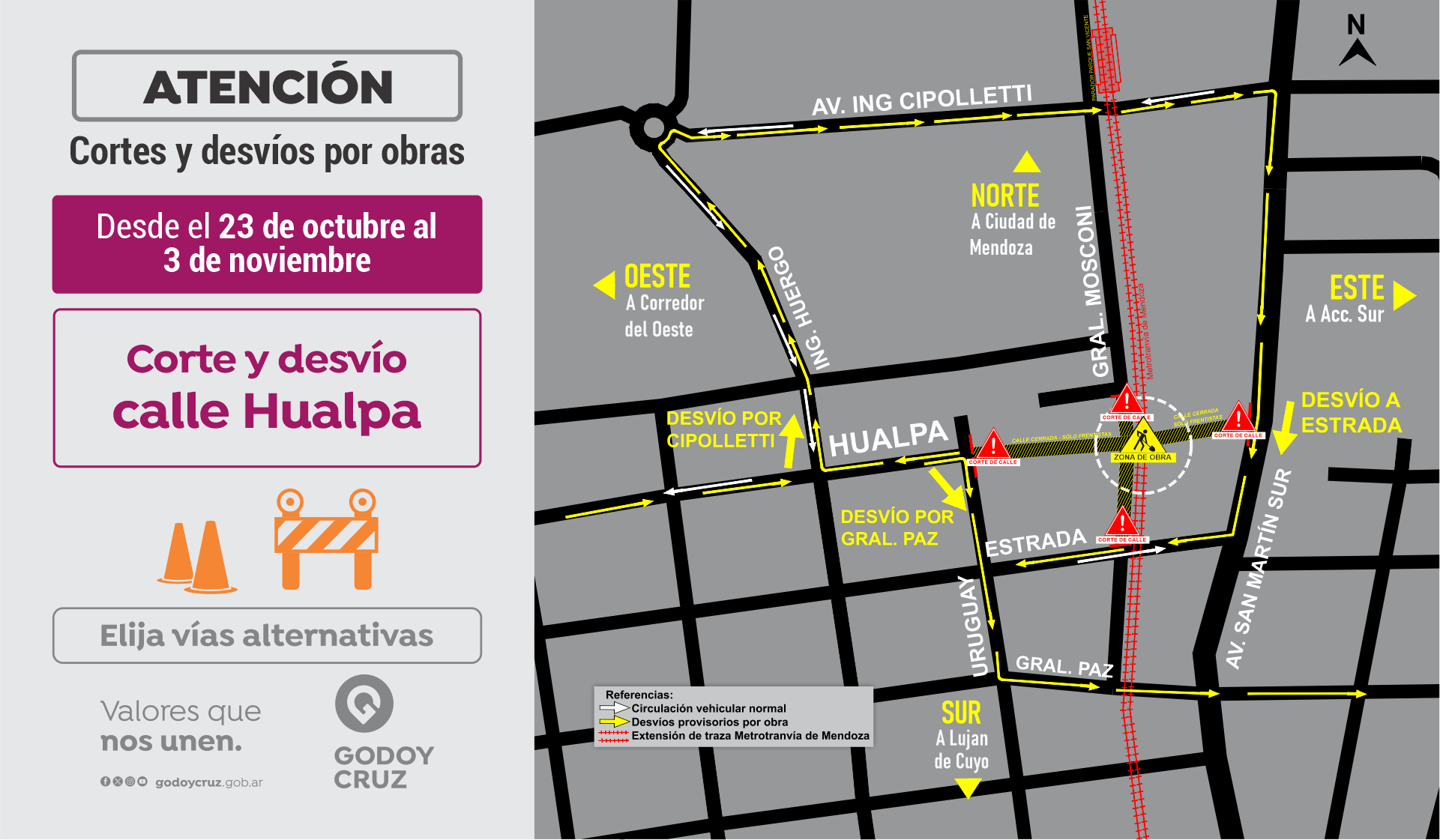 Es importante destacar que quienes de Este a Oeste, deberán tomar por Cipolletti o por Estrada. Mientras que quienes vengan circulando desde el Oeste hacia el Este, deberán desviarse por Cipolletti o General Paz.