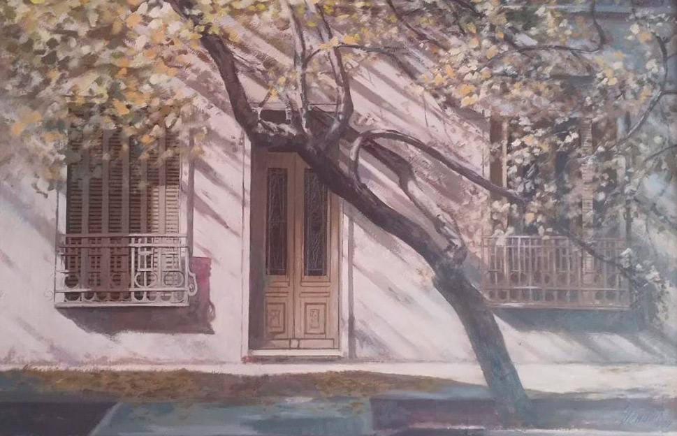 Dentro de su producción, la serie dedicada a las fachadas mendocinas invita a reflexionar sobre el patrimonio arquitectónico y cultural de la provincia.