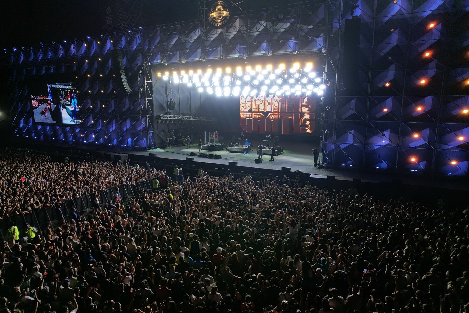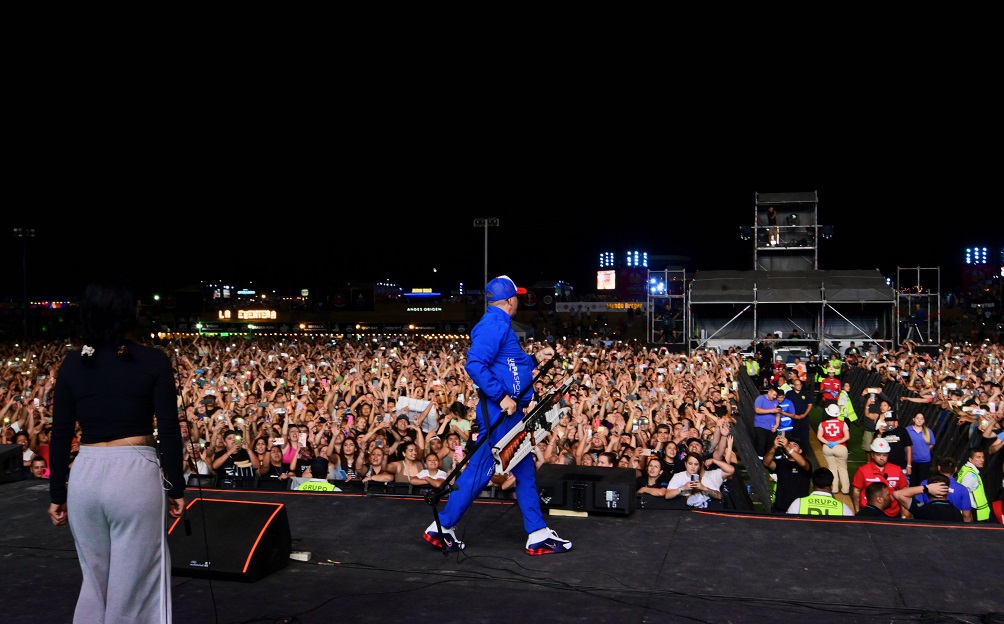 La escena se volvió aún más especial con la presencia de los robots luminosos, que recorrieron el predio con juegos de luces y movimientos sincronizados. Así, bailaron entre la gente y también subieron al escenario, aportando un toque futurista y dinámico a una noche ya encendida.