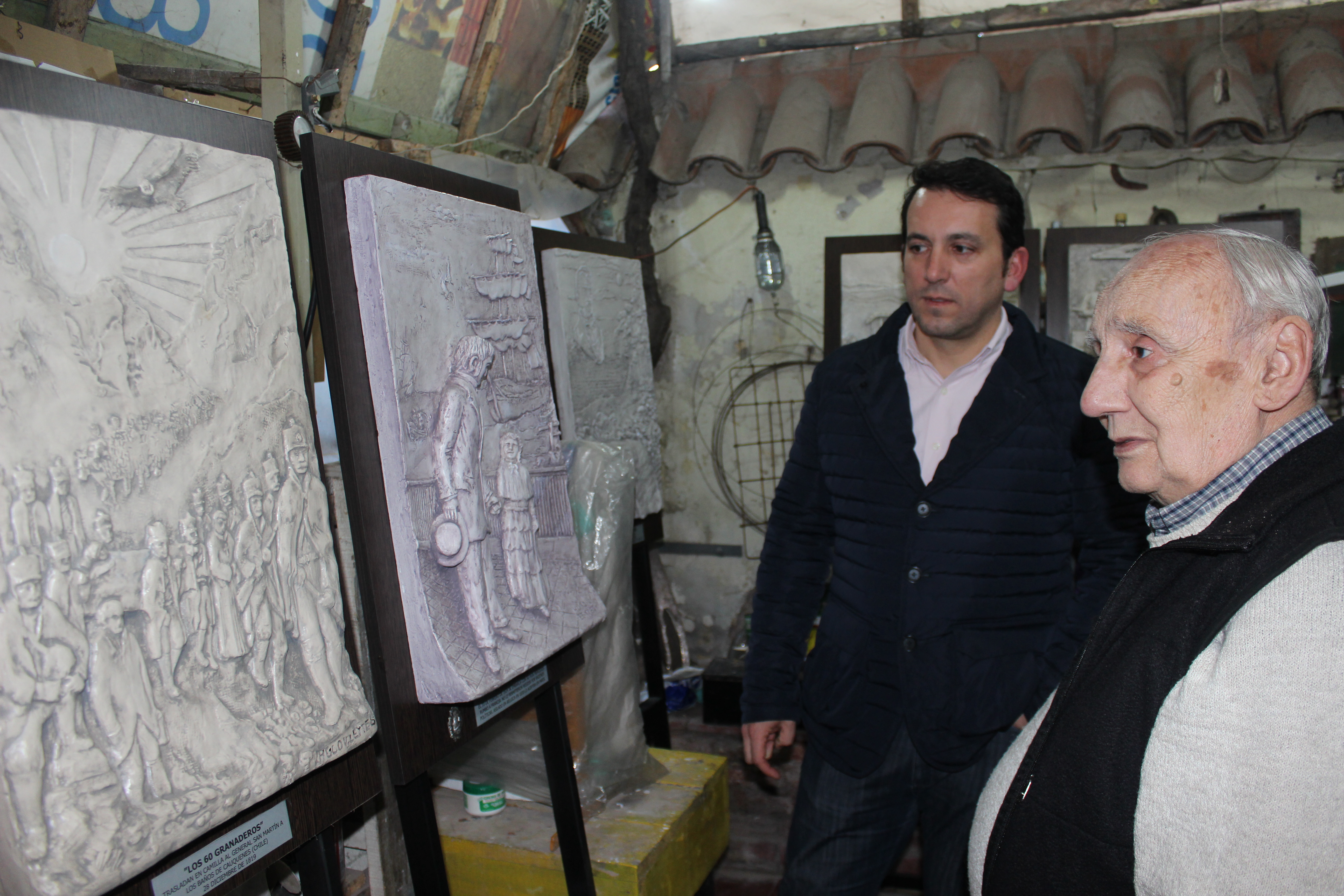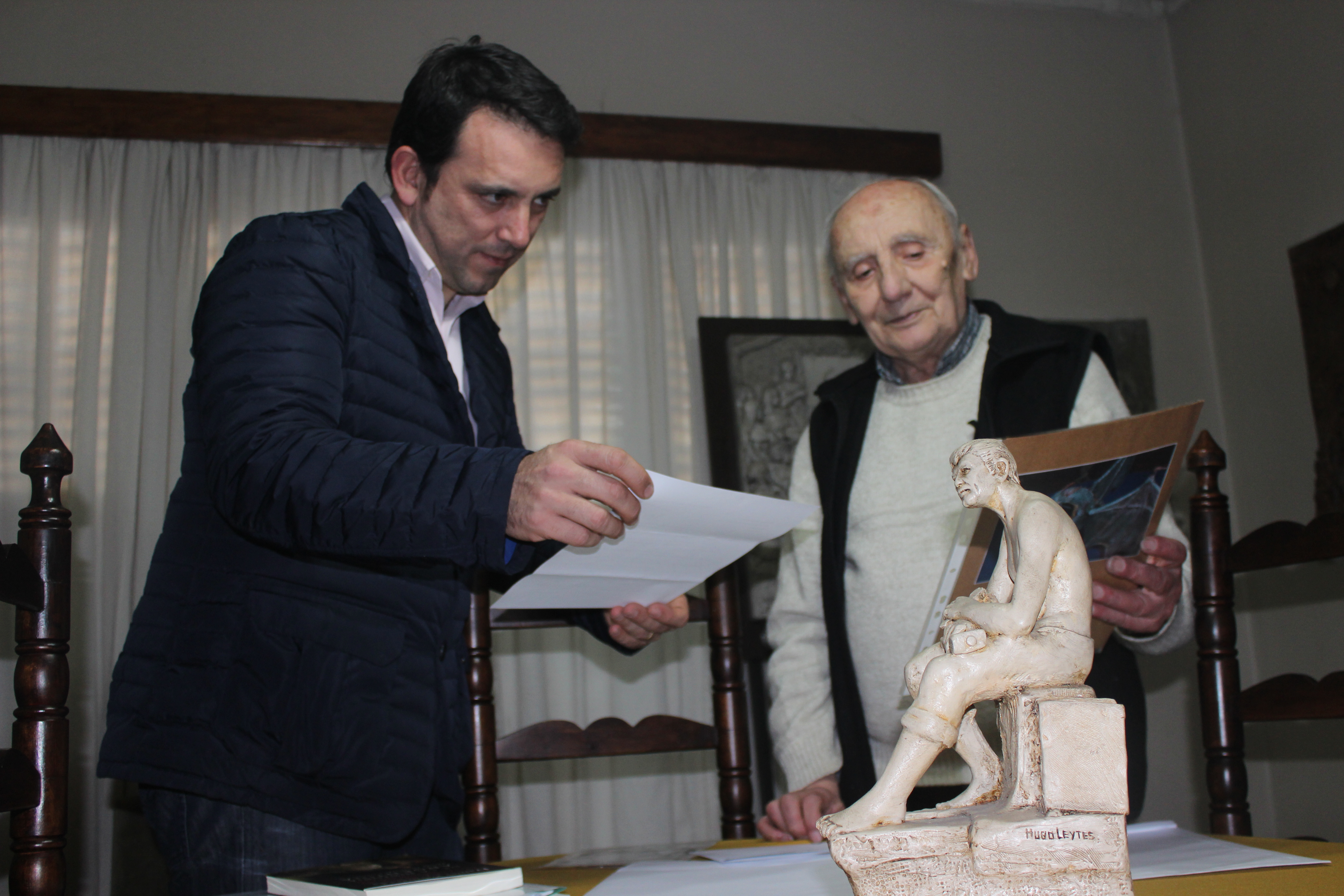 El intendente Tadeo García Zalazar visitó este miércoles a Hugo Leytes, un reconocido escultor departamento de Godoy Cruz, para ver las obras que guarda en el taller que tiene montado en su propia casa.