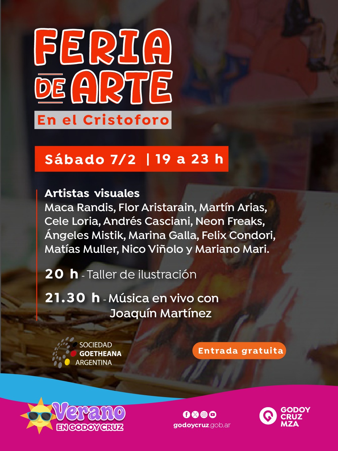 Artistas visuales: Maca Randis, Flor Aristarain, Martín Arias, Cele Loria, Andrés Casciani , Neon Freaks, Ángeles Mistik, Marina Galla, Felix Condori, Matias Muller, Nico Viñolo, Mariano Mari.
