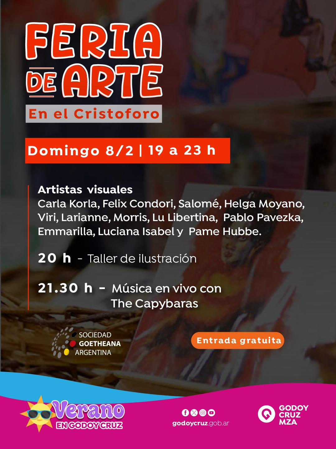 La sala Cristoforo Colombo será el punto de encuentro de una feria de arte que reunirá artistas visuales, talleres gratuitos para todo público y espectáculos músicales en vivo.