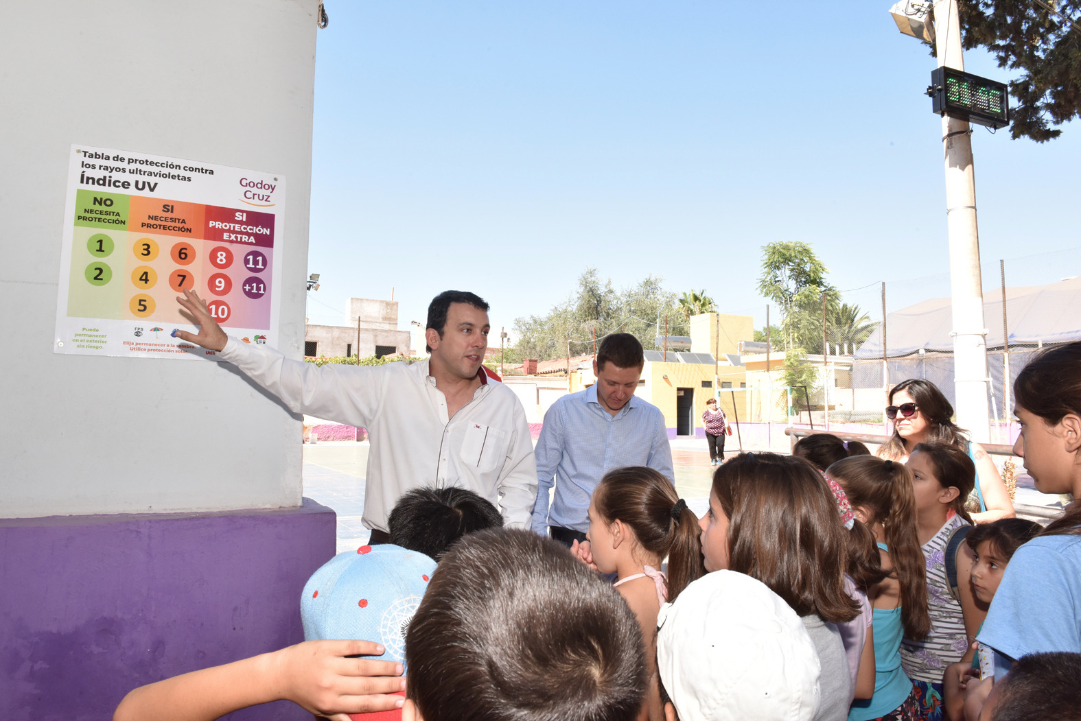 “Este sensor, explicó, muestra hora, temperatura, e indica el índice UV entre las 9 y las 20 hs, advirtiendo qué tipo de protección deberán utilizar”. Agregó que “es importante prevenir y concientizar sobre el uso de protección para evitar cáncer de piel e insolación”.