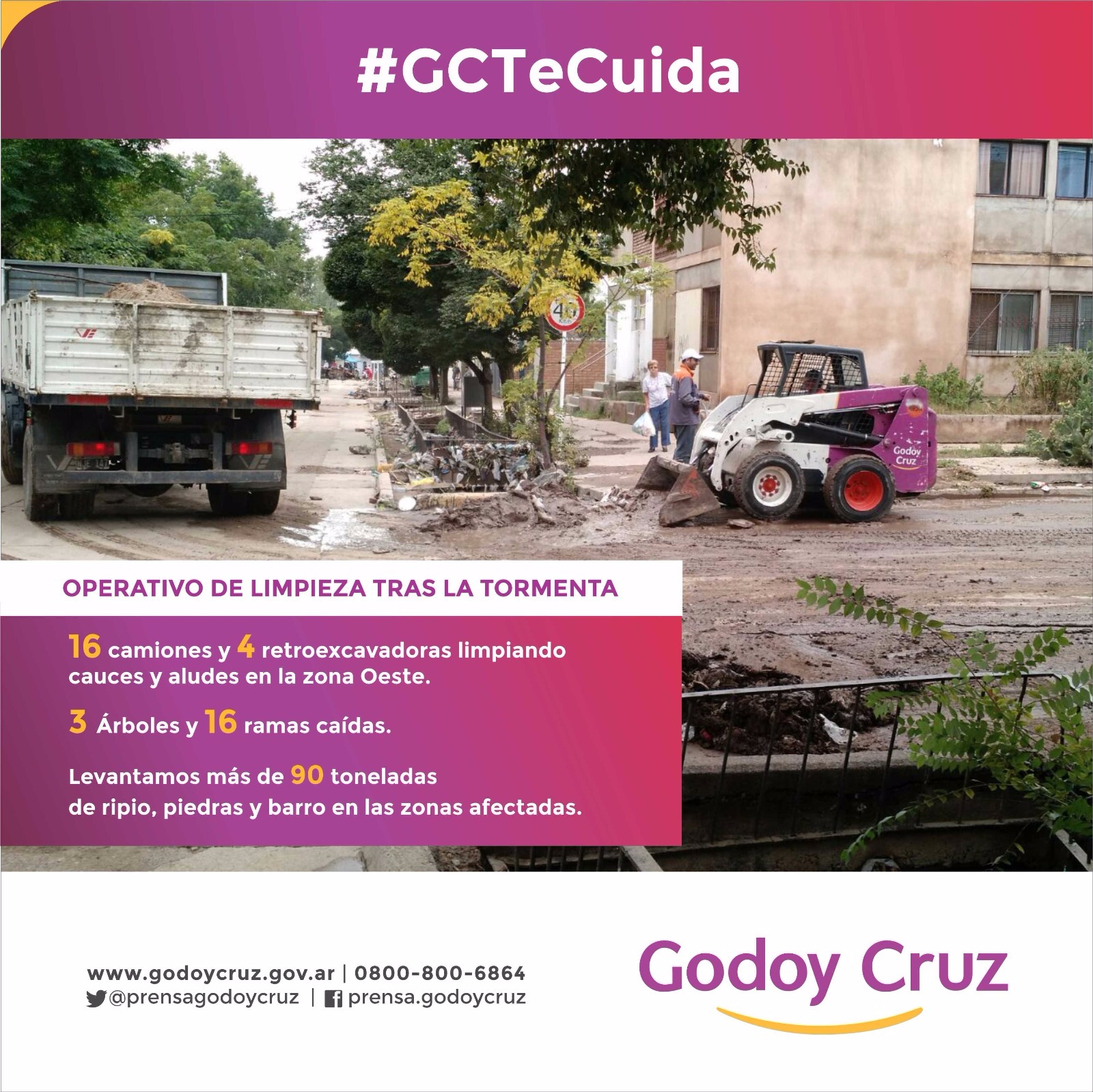 Con 16 camiones y 4 retroexcavadoras se limpiaron cauces y aludes que se produjeron durante la lluvia en la zona oeste del departamento.