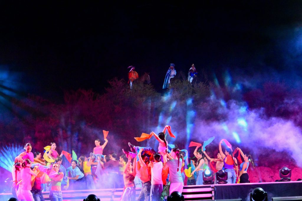 El eje central de la noche fue la obra teatral y musical “Esperando su llegada”, con guion y dirección general del profesor Fabián Quiroga. La propuesta invitó a recorrer un viaje en el tiempo, mostrando cómo se escribían las cartas a los Reyes Magos en el pasado, cómo se viven en el presente y cómo podrían imaginarse en el futuro.