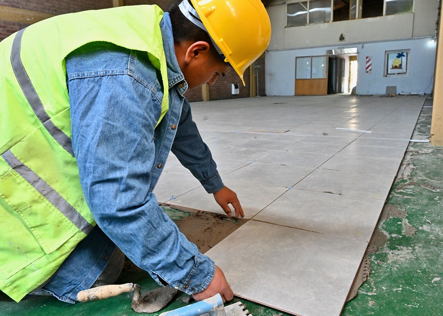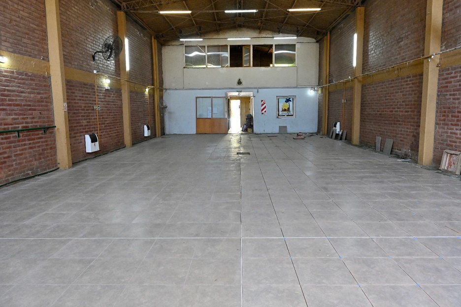 La intervención incluye la colocación de nuevos cerámicos en todo el SUM —unos 180 m². De manera tal que. que se está reemplazando la antigua superficie de hormigón . También, se están desarrollando las siguientes mejoras: