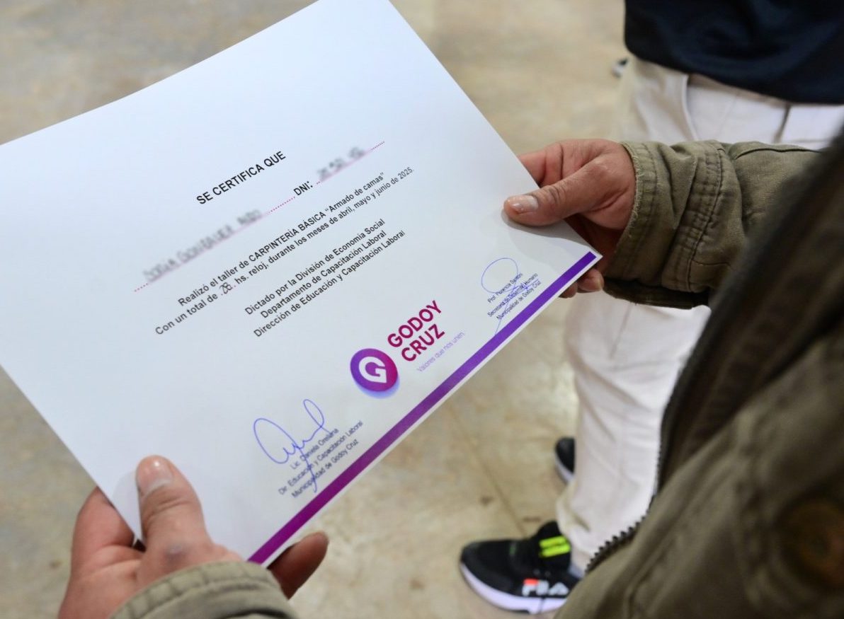Los 36 participantes integraron el taller de “armado de camas” y, posteriormente, donaron sus creaciones a personas en situación de vulnerabilidad con domicilio en Godoy Cruz y también bancos a una escuela ubicada en el departamento.