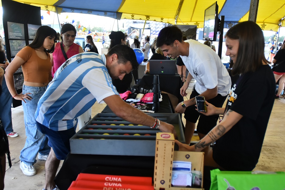 El stand de Turismo invita a descubrir los atractivos del departamento a través de juegos, trivias y sorteos que se realizan antes de las bandas principales.