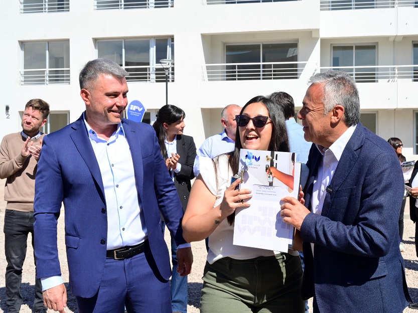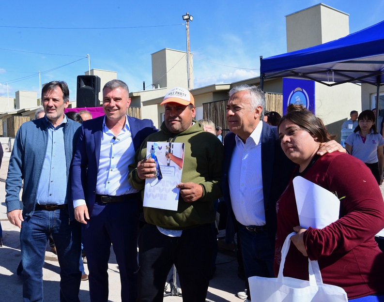 El intendente y el gobernador Alfredo Cornejo encabezaron la entrega de viviendas en los barrios 4 de Julio y Jardines de Civit. Dos proyectos que forman parte de un plan integral para ampliar el acceso a la vivienda en el Departamento