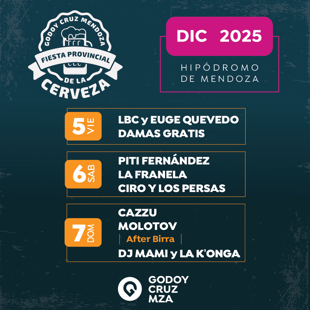 Terminó el suspenso: Godoy Cruz revela la grilla completa de la Fiesta Provincial de la Cerveza 2025